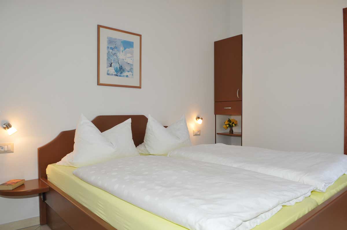 Apartment no. 6 is a very nice apartment. This apartment is equipped with a bedroom with a double bed, an eat-in kitchen with a sofa bed (160 x 200) and a bathroom with a shower/toilet. The integrated kitchen is fully equipped (ceramic hob, fridge freezer, coffee maker, toaster, egg cooker, kettle). The large terrace of the apartment and the south-facing balcony also offer added value for our guests and invite them to relax. This apartment is very popular with our guests due to the generous equipment and the cozy furnishings.